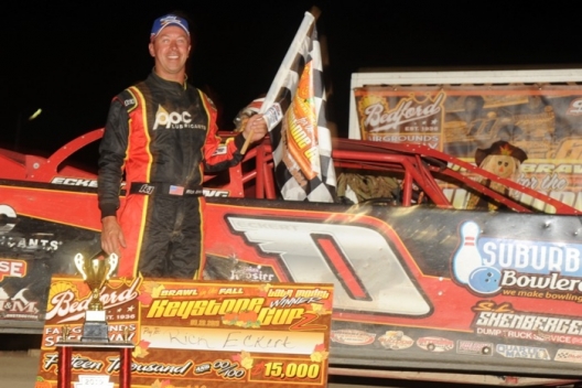 BEDFORD, Pa. (Sept. 28) — Rick Eckert’s ingrained knowledge of Bedford Speedway certainly helped propel him to a rich, runaway victory in Saturday night’s 60-lap Keystone Cup finale. His meteorological instincts also didn’t hurt, though.