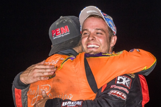 Daryn Klein gets a hug in victory lane after his $5,000 victory.