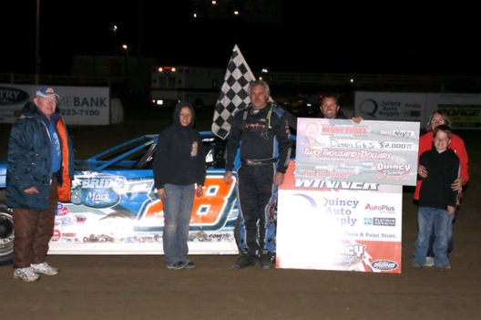What won the race: Taking advantage of his pole starting position, Dennis Erb Jr. of Carpentersville, Ill., led the distance for a $2,000 victory Friday at Quincy Raceway. Erb outran Rich Bell and Rusty Griffaw on the opening night of Quincy’s Kenny Pratt Memorial weekend doubleheader.