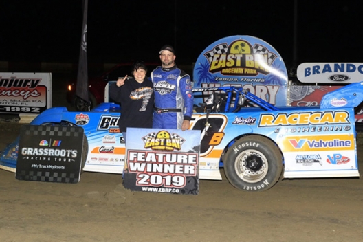 What won the race: Leading flag-to-flag, Kyle Bronson of Brandon, Fla., won Saturday’s Dalton Myers Memorial at East Bay Raceway Park. Bronson earned $5,400 in winning the 54-lap main event for Crate Late Models. Jeff Mathews and Steve Mathis Jr. completed the podium.