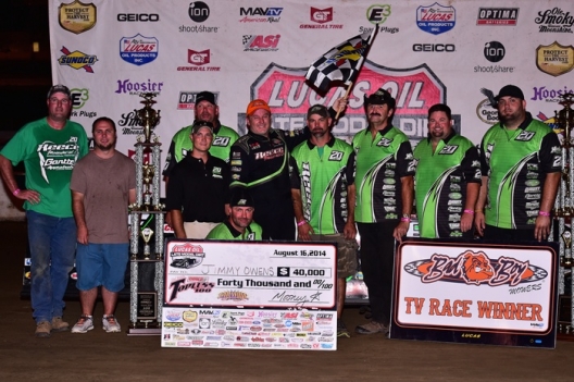 LOCUST GROVE, Ark. (Aug. 16) — After a heartbreaking 10th-place finish in last week’s Sunoco North-South 100, Jimmy Owens returned to victory lane Saturday night in Batesville Motor Speedway’s 22nd annual Comp Cams Topless 100.
