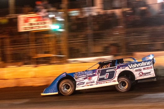 The New Berlin, Ill., driver clicked off his second straight victory on the Keyser Manufacturing Wild West Shootout with a flag-to-flag triumph paying $5,000 after challenger Cade Dillard climbed the wall on a late restart and retired.