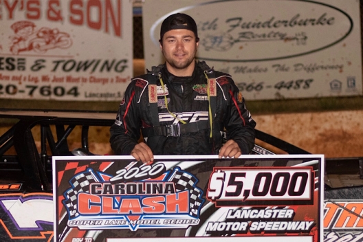 Brandon Overton of Evans, Ga., overtook Ross Bailes of Clover, S.C., for the lead on lap three and dominated the remainder of the 40-lap distance to capture Friday night’s Carolina Clash Super Late Model Series-sanctioned Lancaster Lidlifter at Lancaster Motor Speedway. He beat Bailes to the finish line by a commanding margin of 6.094 seconds to earn $6,335, including a $1,335 crowd-funded bonus.