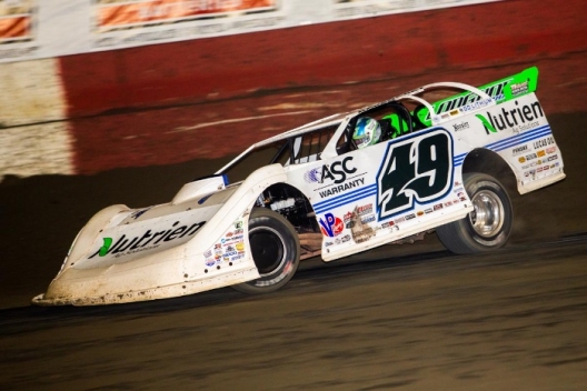 Notes: On a night when thunderstorms seemed to be dancing all around the area, only some light sprinkles fell on the track during the program. … The feature ended at 10:12 p.m. … Tyler Erb was penalized two spots by Lucas Oil Series officials — moving him from fifth to seventh — during a lap-38 caution period for jumping the previous restart. He recovered to salvage a fifth-place finish. … Tanner English briefly cracked the top five on a lap-19 restart but settled for an eighth-place finish in his Riggs Motorsports No. 81E. … Hudson O’Neal’s MasterSbilt house car was towed off the track on lap 38 with right-side damage after he clipped the Clint Bowyer Racing machine driven by Josh Richards, who was slowing entering turn three due a cut left-rear tire. … Stormy Scott retired from further competition after his lap-eight spin due to a broken right-front lower control arm.