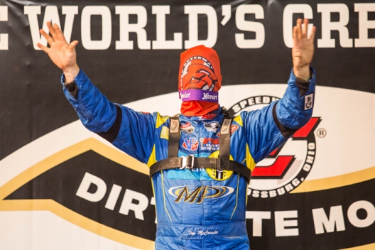 McCreadie, who started 13th, drove to the inside of a high-flying Brandon Sheppard of New Berlin, Ill., to take the lead on lap 64 and pulled away. But as he zipped down the backstretch on the white flag lap toward almost certain victory, the caution appeared for Tyler Erb of New Waverly, Texas, who shredded a right rear tire, leaving debris strewn around the track.