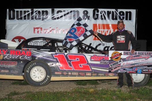 What won the race: Tallying his second career Zimmer’s United Late Model Series win, polesitter Doug Drown of Wooster, Ohio, led flag-to-flag in the series opener at Thunder Mountain Speedway on Friday night. Taking the checkers ahead of Mike Pegher Jr. and Max Blair, Drown bagged $3,000.