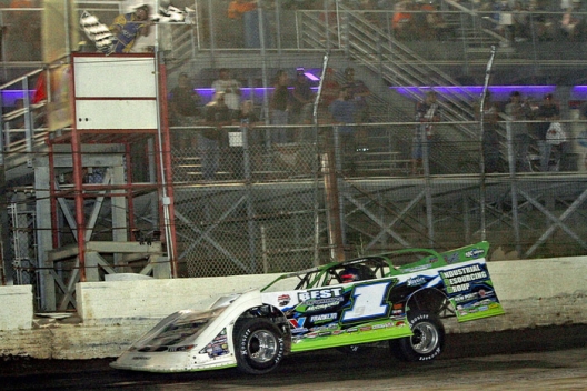 Pierce’s hopes effectively evaporated after a stumbling motor caused him to slide into the turn-two wall and lose second to Frank Heckenast Jr. of Frankfort, Ill., on lap 23. Then, following a lap-27 caution period for Matt Lux of Franklin, Ill., Pierce attempted a slider through turns one and two to regain second, but it ended with the caution lights blinking back on because Heckenast was squeezed into the turn-two wall and needed wrecker service.