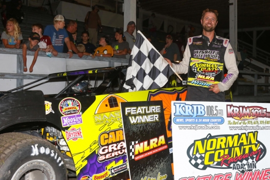 What won the race: Series points leader Dustin Strand of Grand Forks, N.D., led all 25 laps Thursday at Norman County Raceway to become the first two-time Northern LateModel Racing Association winner this season. Strand took the checkers a half-second ahead of runner-up Don Shaw.