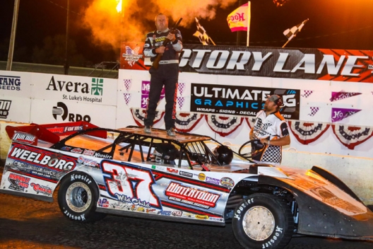 Winner's sponsors: Ward’s Rocket Chassis is sponsored by Weelborg Crop Insurance, Boldt Construction, Cloud 9 Bar, Watertown Lawn and Garden/Small Engine Repair, Wehrns Machine, #1 Welding, Fleming Farms, Barrel House and Penske Racing Shocks.