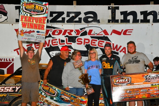Key notes: McIntosh has seven Fall Nationals victories and two on the Iron-Man circuit. ... Fighting issues with a stuck throttle, the winner needed a push after he stopped during a lap-33 caution; he also had a flat tire by the time he got to victory lane. ... Vic Hill was running third when he had a flat tire on lap 40. ... Michael Chilton was running third when he slowed with problems on lap 21. ... Eight cautions slowed the action. The most serious incidents came with four-car pileup in turn two on a lap-10 restart, then on the 22nd lap when Jason Trammell and Pierce McCarter tangled on the backstretch. ... McCarter piloted the MasterSbilt house car recently vacated by Hudson O'Neal and came back to finish fifth.