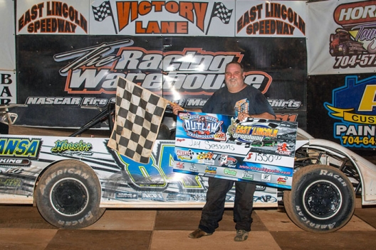 Jay Sessoms in victory lane at East Lincoln.