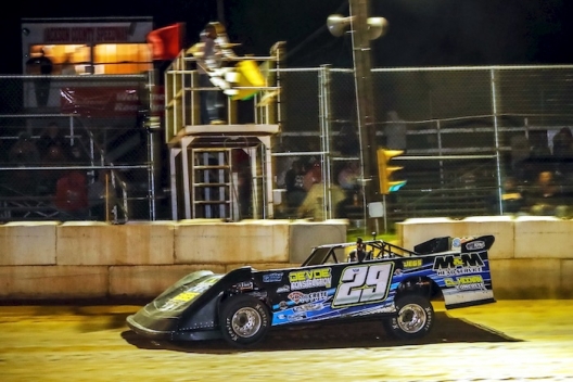 Clint Keenan takes the checkers for his third SBLMS victory.