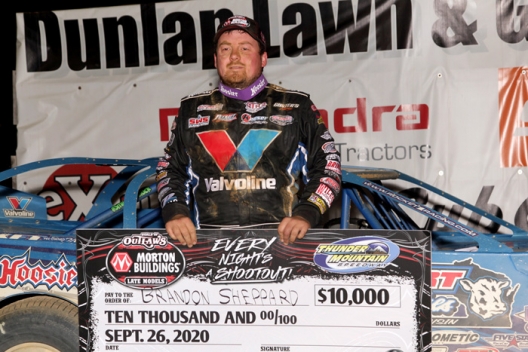 Sheppard, of New Berlin, Ill., took the checkers 0.302 seconds ahead of Miley, who had grabbed the lead from Darrell Lanigan of Union, Ky. on the 24th circuit and dominated the second half of the 51-lapper extended one lap because of the last-lap yellow. Ashton Winger of Hampton, Ga., rallied from his 19th starting spot for third while 18th-starting Michael Norris of Sarver, Pa., was fourth. Dennis Erb Jr. of Carpentersville, Ill., advanced seven spots to finish fifth while Lanigan, who led the first 23 laps but slipped from second to fourth on the 42nd lap before fading further, was seventh.