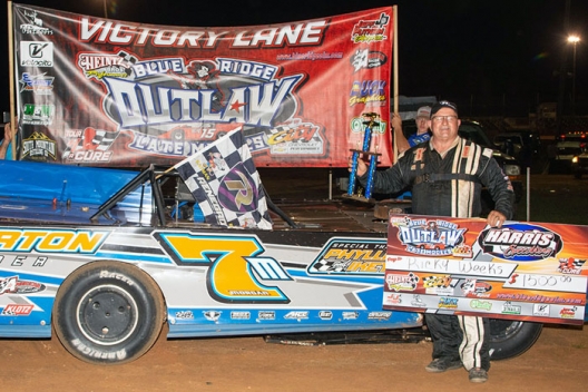What won the race: Hometown driver driver Ricky Weeks captured his first Blue Ridge Outlaws victory of the season Sunday at Harris Speedway, earning $1,500 for leading all 30 laps.
