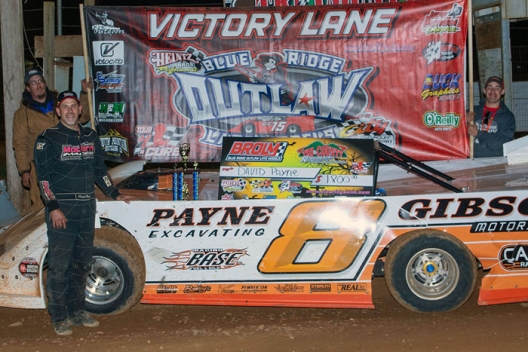 Key notes: Danny Ledford's car failed the "droop rule" that limits deck height. ... Payne and fast qualifier Jamie Oliver battled hard for second until Oliver's throttle hung, sending his car hard into the turn-three wall. ... A power outage at the facility shifted Friday night's program to Saturday. … Payne became the 13th winner in 17 Blue Ridge Outlaws races this season. ... Daniel Wilson scratched from the feature.