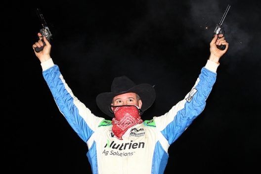 Davenport dominated from there. Although he continued running low on the track through turns three and four, Davenport committed to the high line around turns one and two for the remainder of the 40-lap race and pulled way to earn a $5,000 victory. In doing so, Davenport remains eligible for the $250,000 Keyser Quarter-Million Challenge bonus offered to any driver sweeping all six Wild West Shootout features.