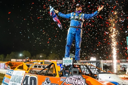 The 30-year-old Brandon Fla., driver's success in a brand new Rocket Chassis came at the same track where he captured his only other WoO victory in 2014 as the Lucas Oil Late Model Dirt Series regular celebrated a victorious start to his national touring season.