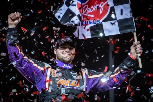 Notes: Pierce, who was slated to start second, had to make an engine change after his heat win. His team ran out of time, forcing Pierce to jump into Reid Millard’s car and start at the tail of the field. He made two laps and parked. … Nineteen of the 28 starters completed 40 laps. … Larson, who started third and ran among the top four until his demise, changed his tire and managed a 16th-place finish. … After challenging for a podium spot early, Tony Jackson Jr. of Lebanon, Mo., began to fade midway through, dropping back to seventh by lap 20 and 10th on lap 25. He eventually finished 19th, the last car on the lead lap. … Scott Bloomquist of Mooresburg, Tenn., entered the race fifth in series points, but after running inside the top-10 for most the feature, he pitted with mechanical trouble on lap 37 and finished 21st, losing valuable points to Bronson (third), Dennis Erb. Jr. (seventh), and Eckert (fifth) who were each within 24 points of Bloomquist entering the event.