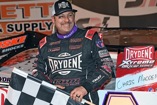 What won the race: Series points leader and reigning champ Chris Madden of Gray Court, S.C., led unchallenged for 40 laps to capture Sunday’s Frostbite 40 at Cherokee Speedway for a $5,000 Drydene Xtreme DIRTcar Series victory.