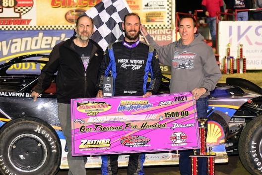 Winner's sponsors: Leighton’s Mark Wright Racing Black Diamond Chassis is powered by a Scott Bailey Race Engine and sponsored by Swain Construction, Taylor Quik Pik, Collins Home Creations, Duros Dent Works, Wright’s Feedyard and Billy’s Cafes.