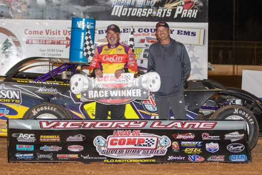 What won the race: Surviving a green-white-checkered finish, Billy Moyer of Batesville, Ark., held off eighth-starting Tony Jackson Jr. to claim a $3,000 Comp Camp Super Dirt Series victory Friday at Poplar Bluff Motorsports Park as the tour kicked off its doubleheader weekend in the Show-Me State.
