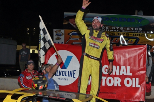 Devin Gilpin in victory lane at Lake Cumberland Speedway.