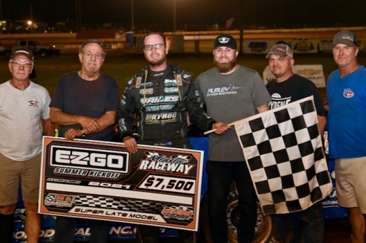 What won the race: Polesitter Ross Bailes of Clover, S.C., led all 50 laps Saturday night at Modoc Raceway, cruising to win the unsanctioned Super Late Model E-Z-Go Summer Kickoff feature and earn $7,500.