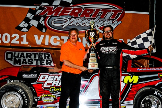 What won the race: Keeping Logan Nickerson and Brandon Thirlby at bay after a late-race caution, second-starting Dona Marcoullier of Houghton Lake, Mich., claimed the $10,000 Allstar Performance Challenge victory on Sunday night at Merritt Speedway. He finished 1.125 seconds ahead of Nickerson.