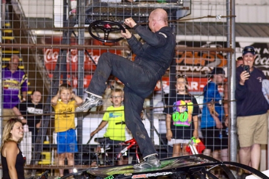 Ryan Mikkelson in victory lane at Buffalo River Speedway.