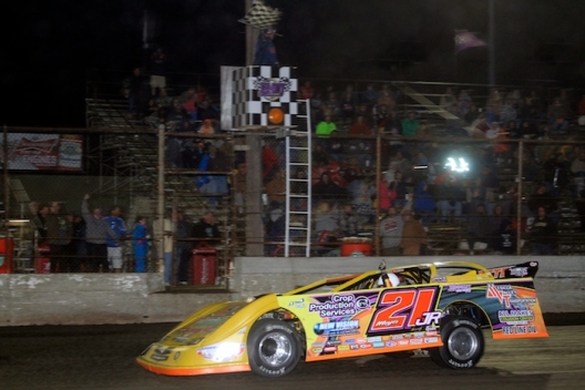 “I think we’ve won three $10,000s, but this is by far the most difficult competition we’ve dealt with as far as being in victory lane,” the 26-year-old winner said. “My dad and (Shannon) Babb, Birkhofer, (Brian) Shirley, (Brandon) Sheppard, man, there are so many heavy hitters over here, (Jason) Feger, you can’t name 'em on. There’s 15 guys that can win here, and I’m just lucky enough to win. I’m just real thankful to be standing here right now, because tomorrow at Pevely, we could get lapped. So we’ll celebrate tonight and we’ll get to work tomorrow.”
