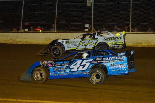 Winner Kyle Hardy (45) chases Gregg Satterlee (22) at Trail-Way.
