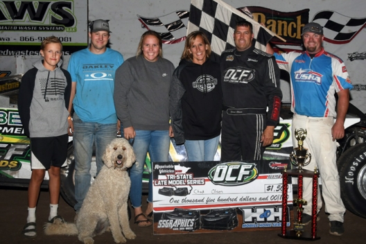 What won the race: Chad Olsen of Hendricks, Minn., outran Nick Beyenhof in his own backyard Friday to capture a $1,500 payday with the Repairable Vehicles.com Tri-State Series at Rapid Speedway.