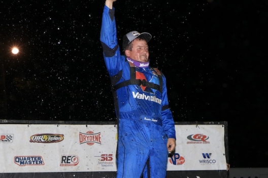 Surviving a second-lap scramble that damaged his car's left-rear corner, then soldiering on after a caution robbed him of his first attempt to grab the lead from Bobby Pierce, the New Berlin, Ill., driver eventually led the final 14 laps of the DIRTcar Summer Nationals feature at Highland Speedway for a $10,000 payday.