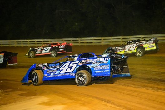 Kyle Hardy (45) digs in the low groove en route to victory at Hagerstown.
