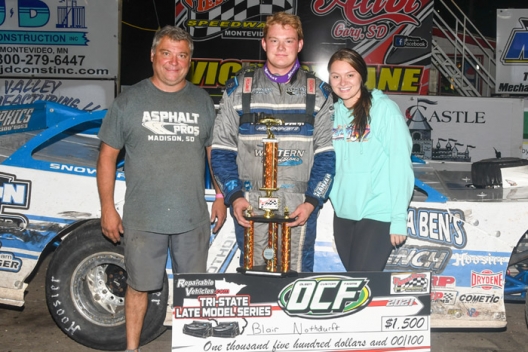 What won the race: Polesitter Blair Nothdurft of Renner, S.D., cruised to win Friday's RepairableVehicles.com Tri-State Series feature at Fiesta City Speedway, collecting $1,500. The victory is the reigning tour champ's fourth of the season and the fifth of his career as he moved into the series points lead.