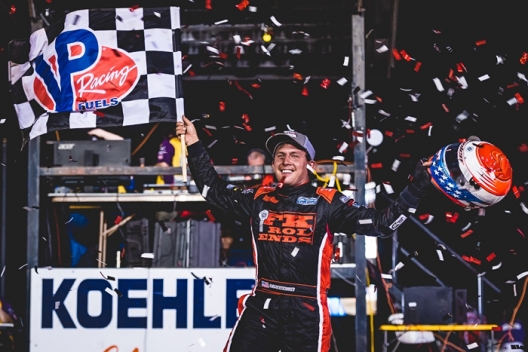 "It was a good race. Congrats to Devin on the win. It was a lot fun, really. It was a super-fun racetrack and this place has been providing really good racing every time we come here lately. So hat's off to Davenport Speedway with that," he said. "I was pretty surprised we were making the bottom work. Normally, I can't really make it work that good, I'm living by the top. But tonight the car was really good. I have to give a big thanks to Dad and all my crew."