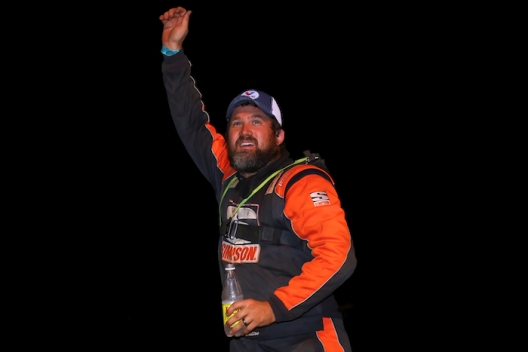 Michael Chilton waves to the Lake Cumberland crowd after his win.