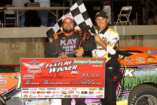 Justin Kay in victory lane at Davenport Speedway.