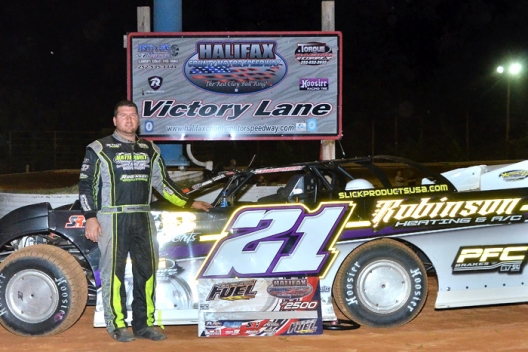Michael Batten in victory lane at Halifax County Motor Speedway.
