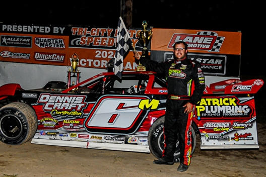 What won the race: Pole-starting Dona Marcoullier of Houghton Lake, Mich., outdueled eighth-starting Derrick Hilliker in Saturday’s Battle by the Bay finale at Tri-City Motor Speedway to capture $10,000. He took the checkers 0.725 seconds ahead of Hilliker to record his seventh Sunoco American Late Model Series victory and third of the season.