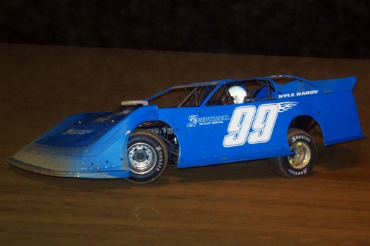 Kyle Hardy heads to victory at Dog Hollow Speedway.
