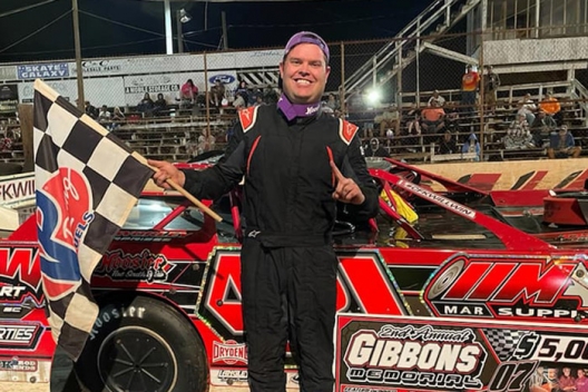 Anthony Sanders in victory lane at Sumter Speedway.