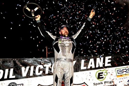 Jonathan Davenport celebrates his first career Dixie Shootout victory.