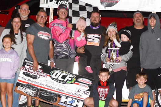 Justin Zeitner had a big crowd in victory lane in Slayton, Minn.