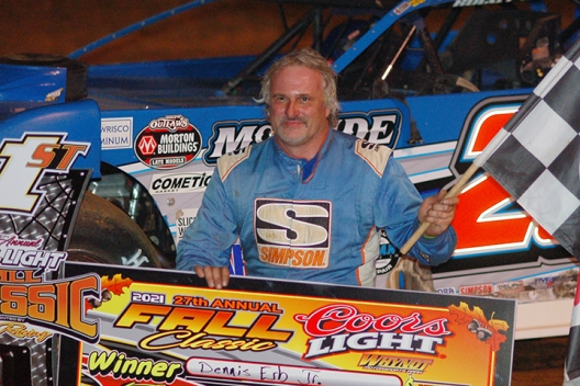 MERIDIAN, Miss. — In 26 runnings of the Coors Light Fall Classic entering the event's 2021 edition, never had a driver won the Mississippi event in back-to-back seasons. Not only did Dennis Erb Jr. accomplish that feat Saturday at Whynot Motorsports Park, the 49-year-old Carpentersville, Ill., driver did it in no-doubt fashion, winning by a half-track margin and lapping all but five competitors for a $15,000 Super Late Model payday.
