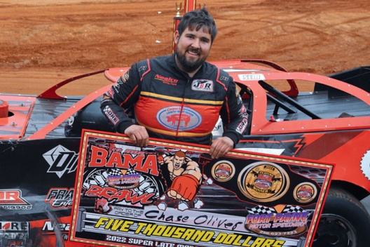 What won the race: Grabbing the lead from Sam Seawright on a late restart, former asphalt racer Chase Oliver of Crossville, Ala., led the final four laps at Fort Payne Motor Speedway to win the fourth annual Eddie Davis Memorial Bama Brawl for his biggest career dirt Late Model triumph. Oliver finished 1.070 seconds ahead of Seawright for a $5,000 payday. Seawright was disqualified for unsportsmanlike conduct after misbehaving on the cool-down lap.