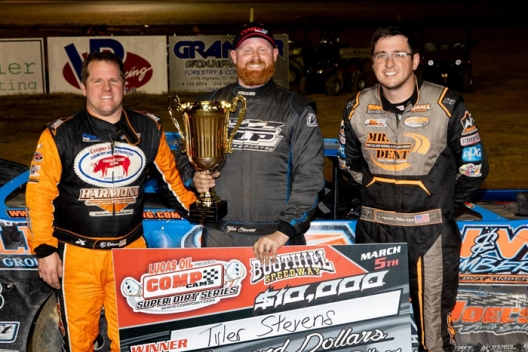 What won the race: Utilizing the outside line, sixth-starting Tyler Stevens of Searcy, Ark., executed a pass for the lead on lap four and paced the final 46 circuits to earn his first career Comp Cams Super Dirt Series feature victory at Boothill Speedway on Saturday, collecting $10,000. Not only the most lucrative win of his career, Saturday's victory was the first for Stevens in a Super Late Model.