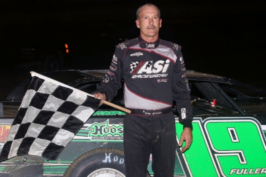 Tim Fuller picks up the checkers at Eriez Speedway.