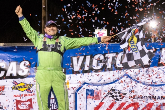 The 25-year-old driver from New Waverly, Texas, led all the way in Saturday evening's Conococheague 50 to earn his first Lucas Oil Late Model Dirt Series victory of the season and a $15,000 paycheck. He set fast time, won his heat race and swept the feature in winning by 2.188 seconds at a track where he'd previously finished 14th (in 2019) and fifth (in 2021).