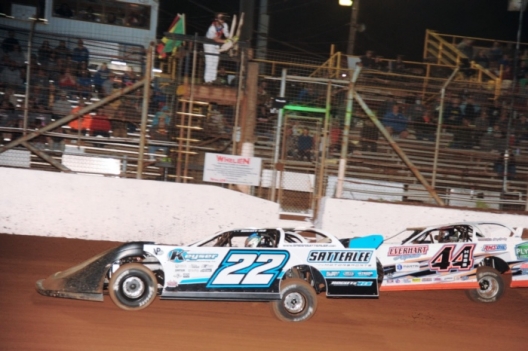 Gregg Satterlee (22) battles Dave Hess Jr. (44) for the lead.